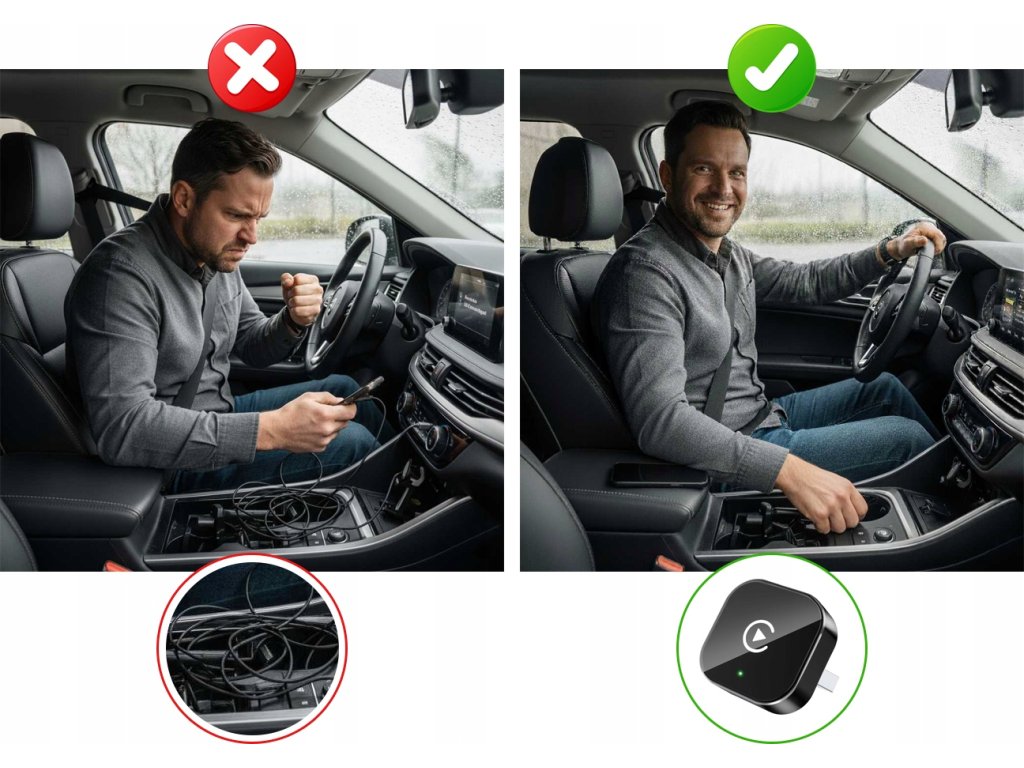 ⭐ Tento adaptér je skvělé řešení, pokud chcete využívat plnou funkčnost CarPlay / Android Auto bez kabelů a bez komplikací.