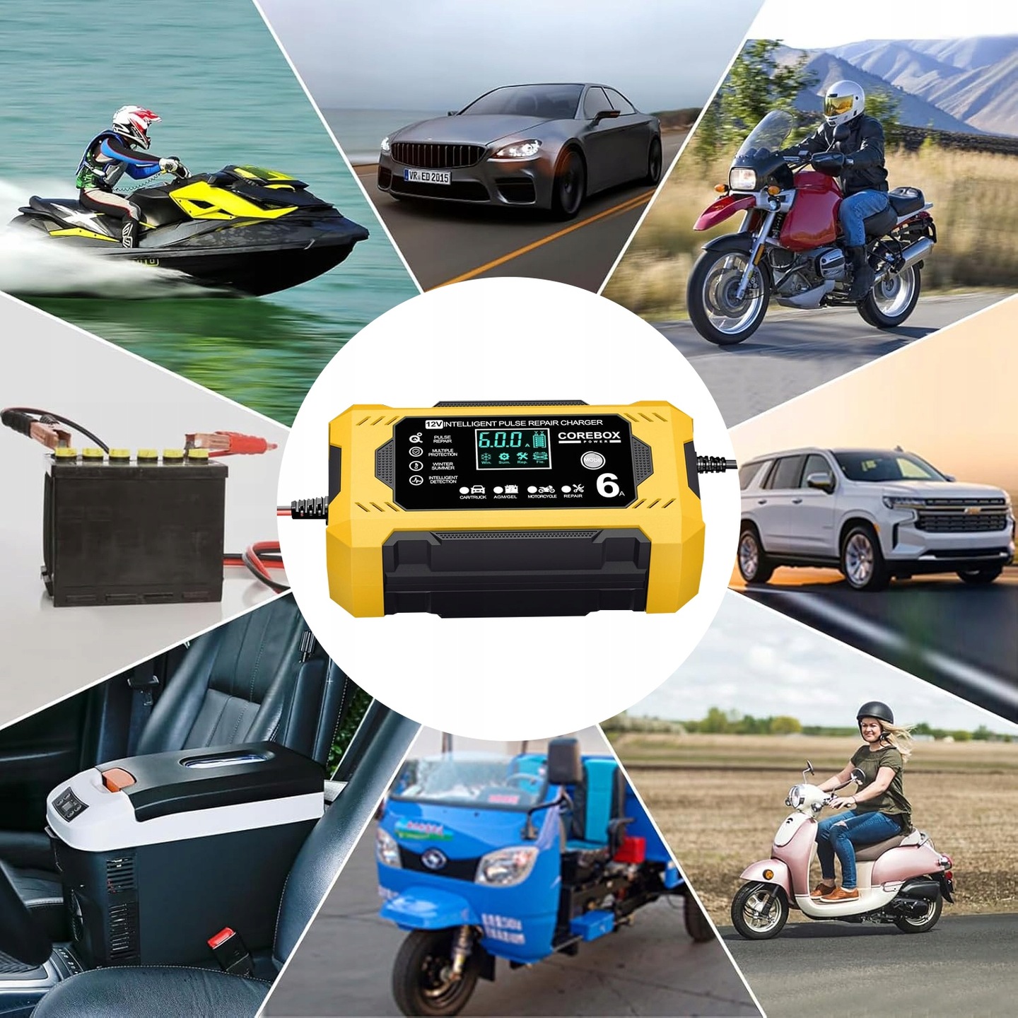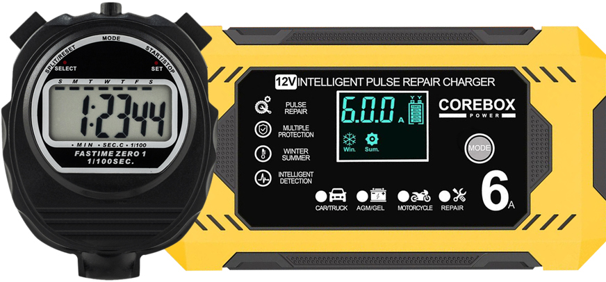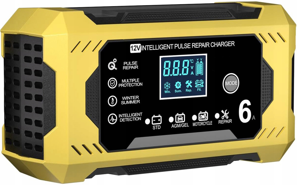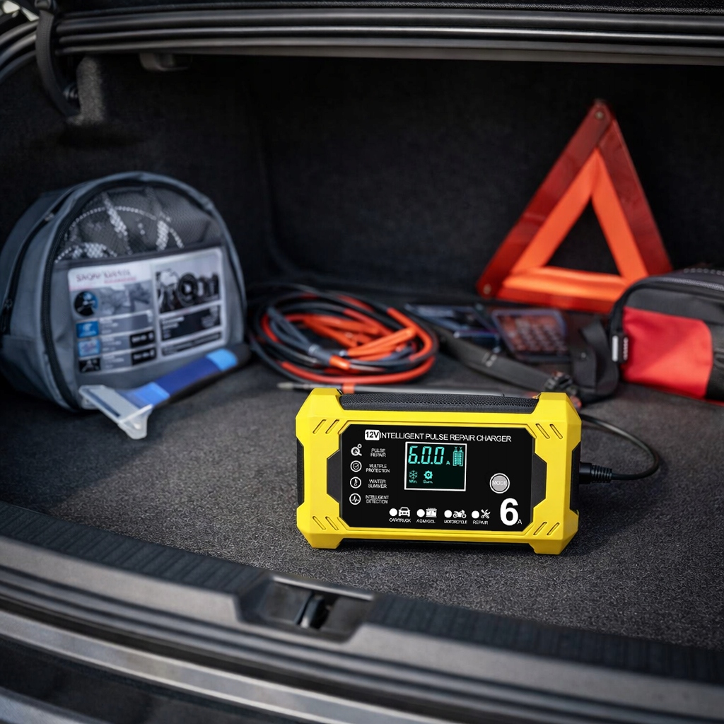 Automatická automobilová nabíječka s funkcí opravy akumulátorů 12 V 6 A