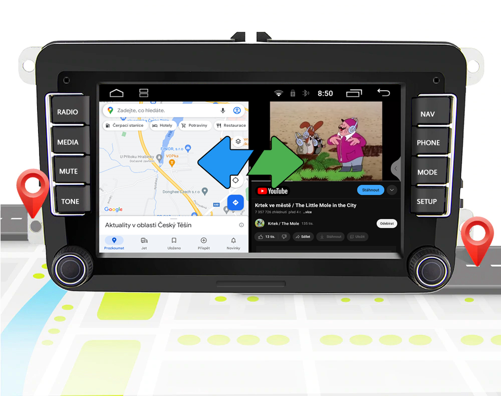 Android umožňuje spouštět a pracovat ve více aplikacích najednou na jedné obrazovce. Jedná se o velmi praktickou možnost, která umožňuje pracovat pohodlněji a rychleji. Můžete tak například používat navigaci a současně zapnout oblíbenou pohádku vašeho dítěte.