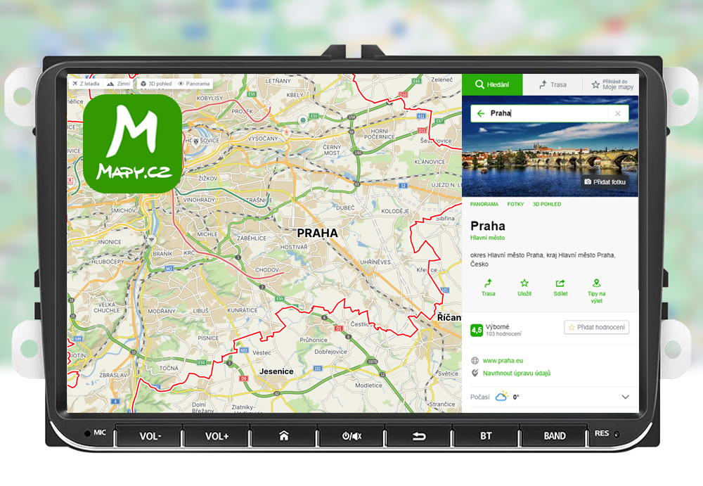 Rádio disponuje vestavěnou navigaci Google Maps s mapami celého světa.