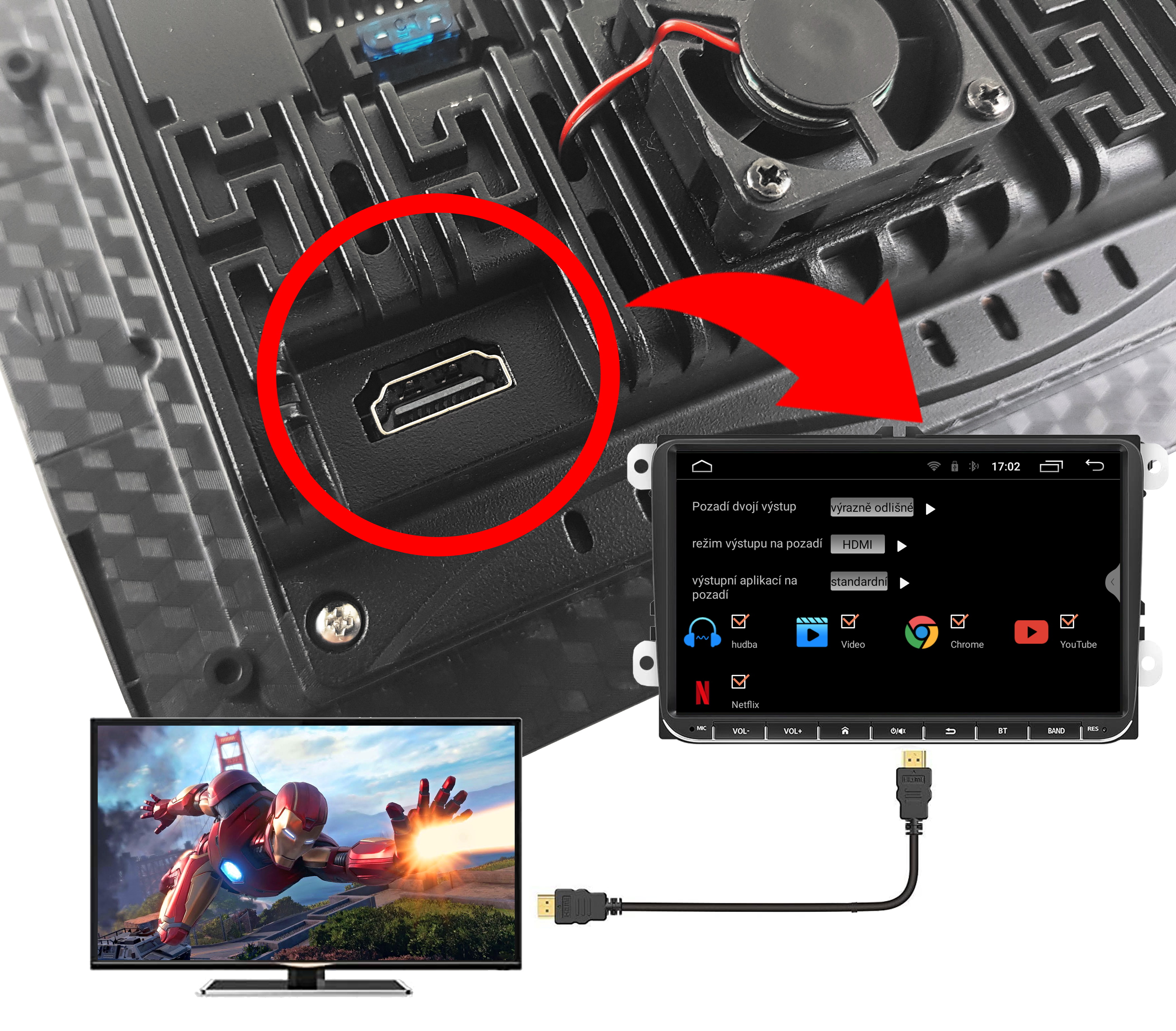 Rádio umožňuje připojit externí monitor pomocí kabelu HDMI, proto může cestujícím snadno zobrazit videoobsah ve vysoké kvalitě, např. filmy, kreslené filmy, nahrávky atd.