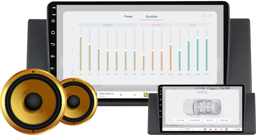 ✔️ Ekvalizér funguje v plném rozsahu bez ohledu na režim (Bluetooth, USB, FM rádio atd.).