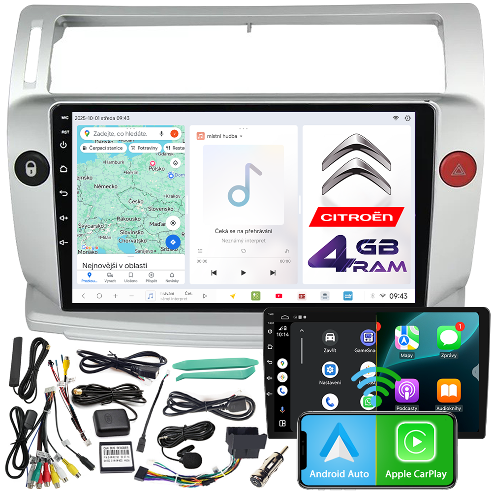 AUTORÁDIO NCS D9 CITROEN C4 2004-2009 ANDROID NAVIGACE 4GB LTE