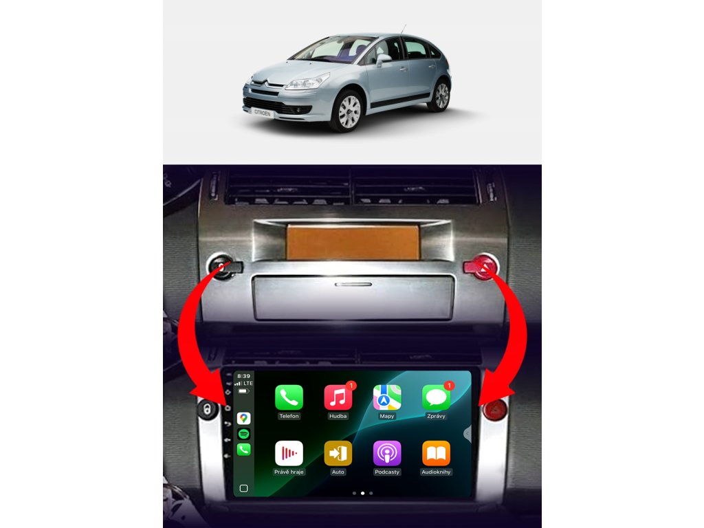 Rádio určené a plně přizpůsobené pro provoz ve vozidle Citroen C4 2004-2010