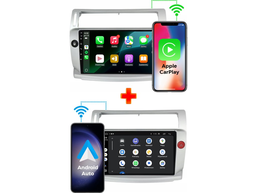 ✔️ Android Auto a Apple CarPlay – přístup k aplikacím jako WhatsApp, Messenger, Spotify, YouTube, Deezer, Amazon Music