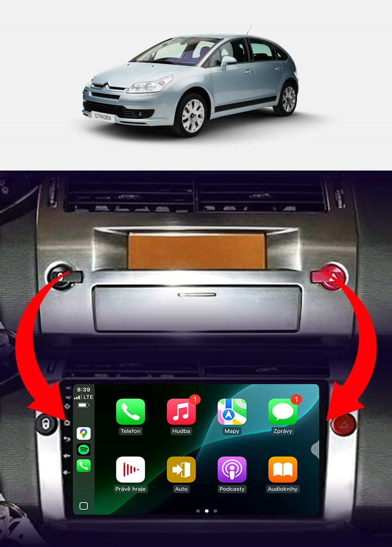 Rádio určené a plně přizpůsobené pro provoz ve vozidle CITROEN C4 2004-2009