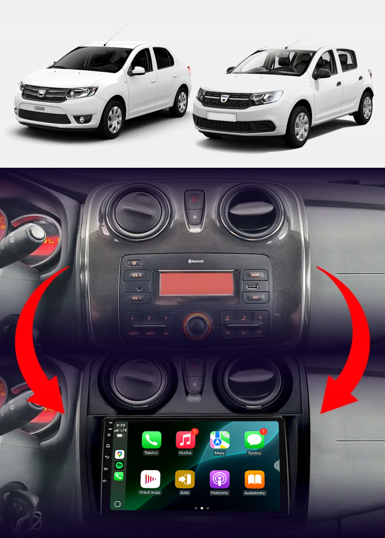 Rádio určené a plně přizpůsobené pro provoz ve vozidle DACIA SANDERO LOGAN II 2012-2020
