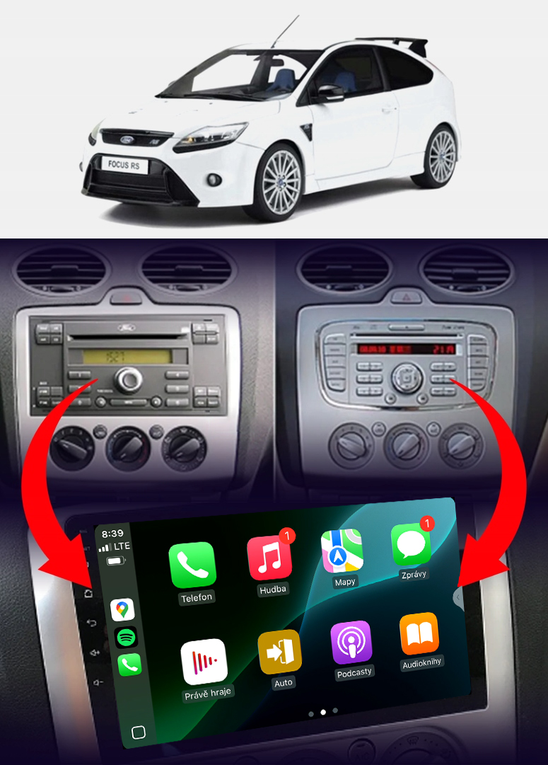 Rádio určené a plně přizpůsobené pro provoz ve vozidle FORD FOCUS Mk2 2004-2011