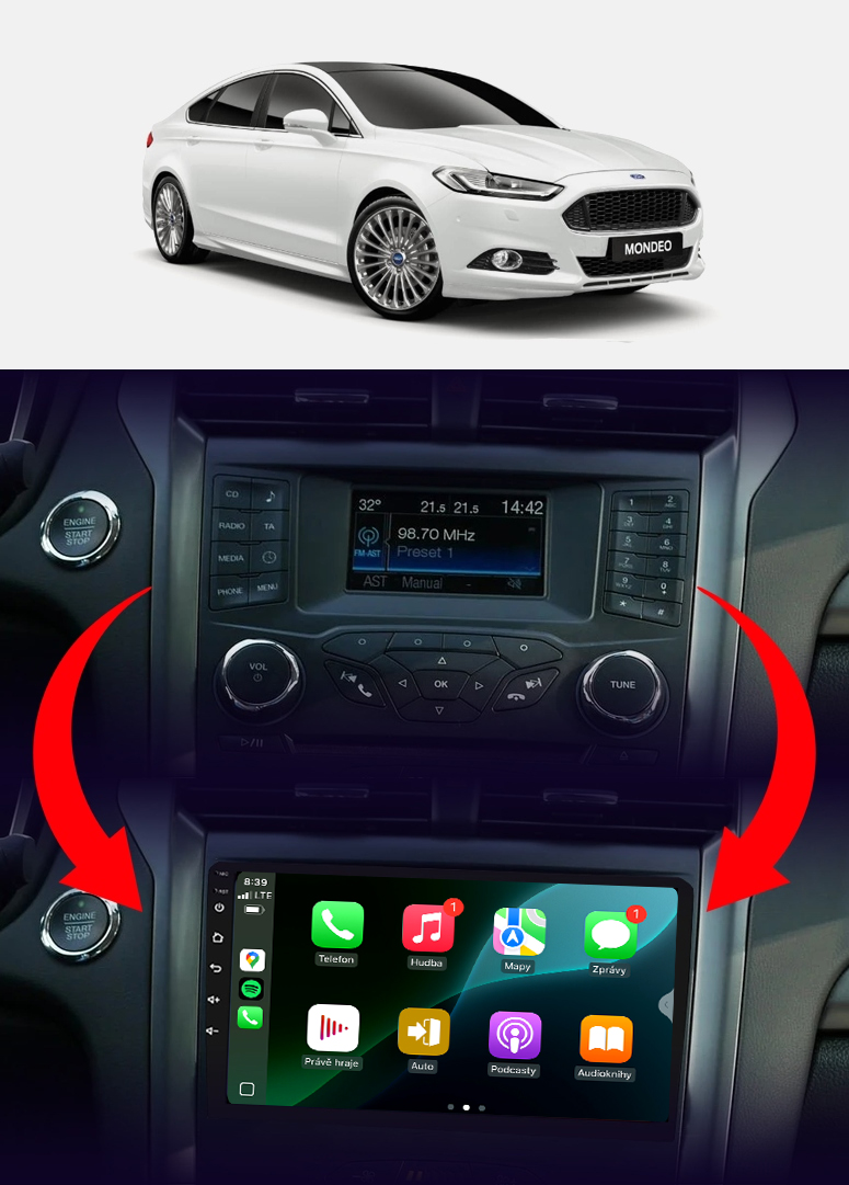 Rádio určené a plně přizpůsobené pro provoz ve vozidle FORD MONDEO Mk5 2013-2018