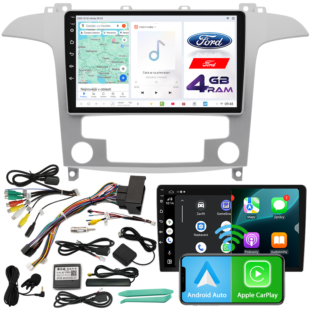 AUTORÁDIO NCS D9 Ford S-Max 2006-2015 ANDROID NAVIGACE 4GB LTE