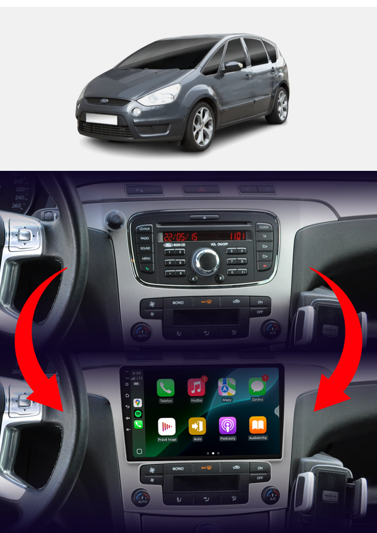 Rádio určené a plně přizpůsobené pro provoz ve vozidle Ford S-Max 2006-2015