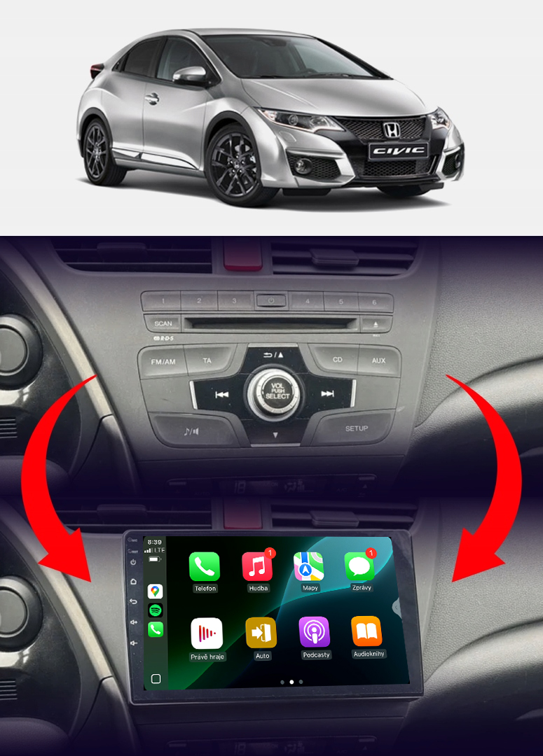 Rádio určené a plně přizpůsobené pro provoz ve vozidle HONDA CIVIC IX 9 2012-2017