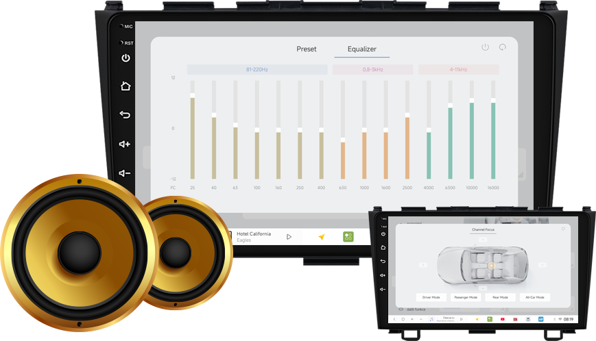 ✔️ Pokročilý digitální ekvalizér umožňuje přizpůsobit zvuk – díky nastavitelným posuvníkům ekvalizéru lze velmi jednoduše nastavit zvuk podle vlastních preferencí.