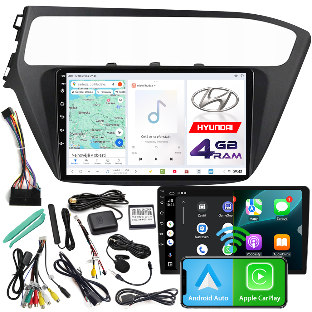 AUTORÁDIO NCS D9 HYUNDAI i20 2018-2020 ANDROID NAVIGACE 4GB LTE