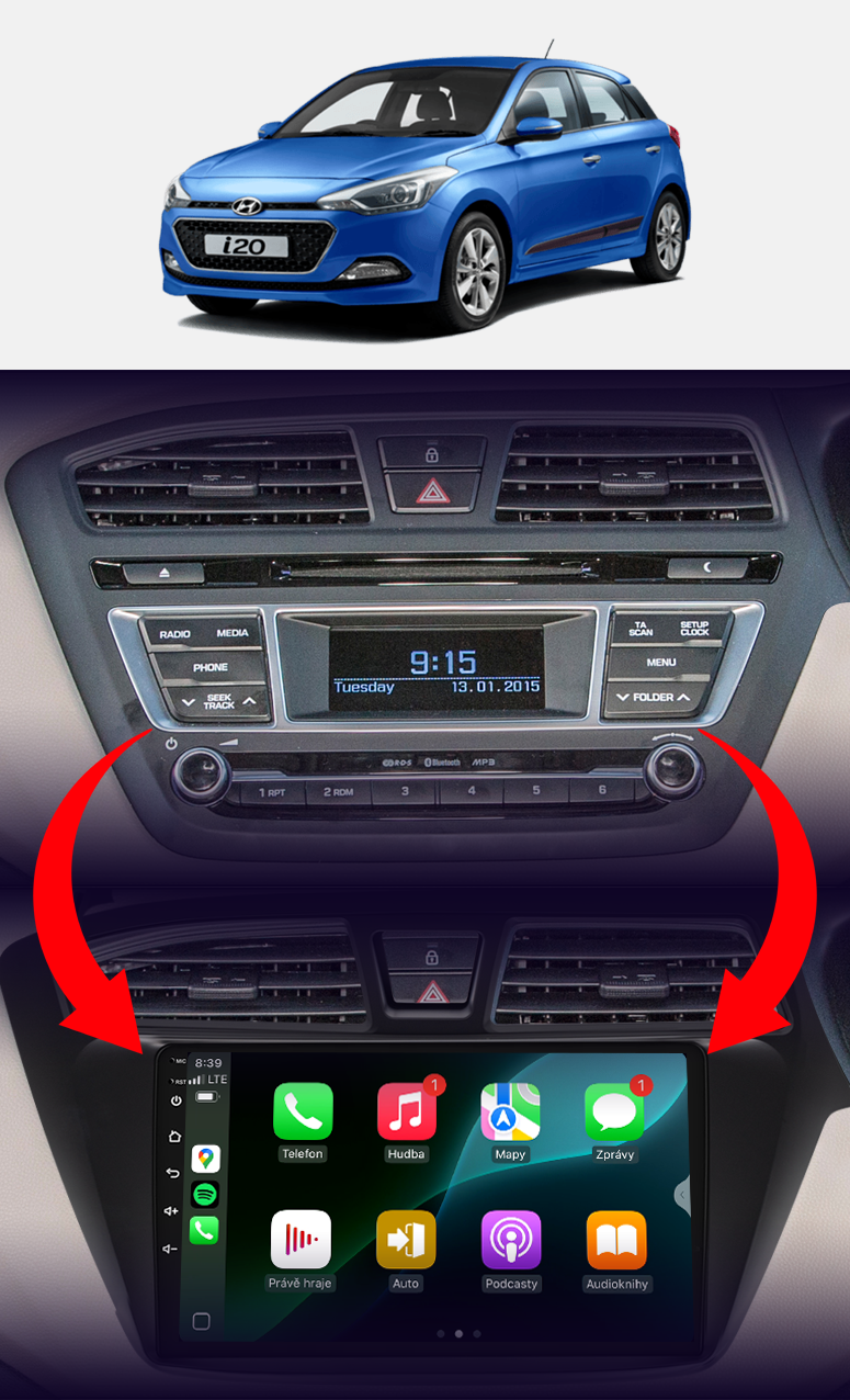 Rádio určené a plně přizpůsobené pro provoz ve vozidle Hyundai i20 II 2015-2017