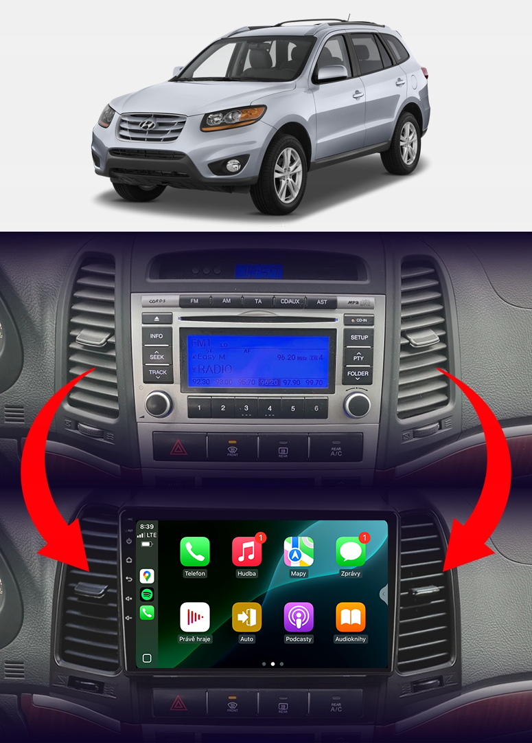 Rádio určené a plně přizpůsobené pro provoz ve vozidle HYUNDAI SANTA FE 2006-2012