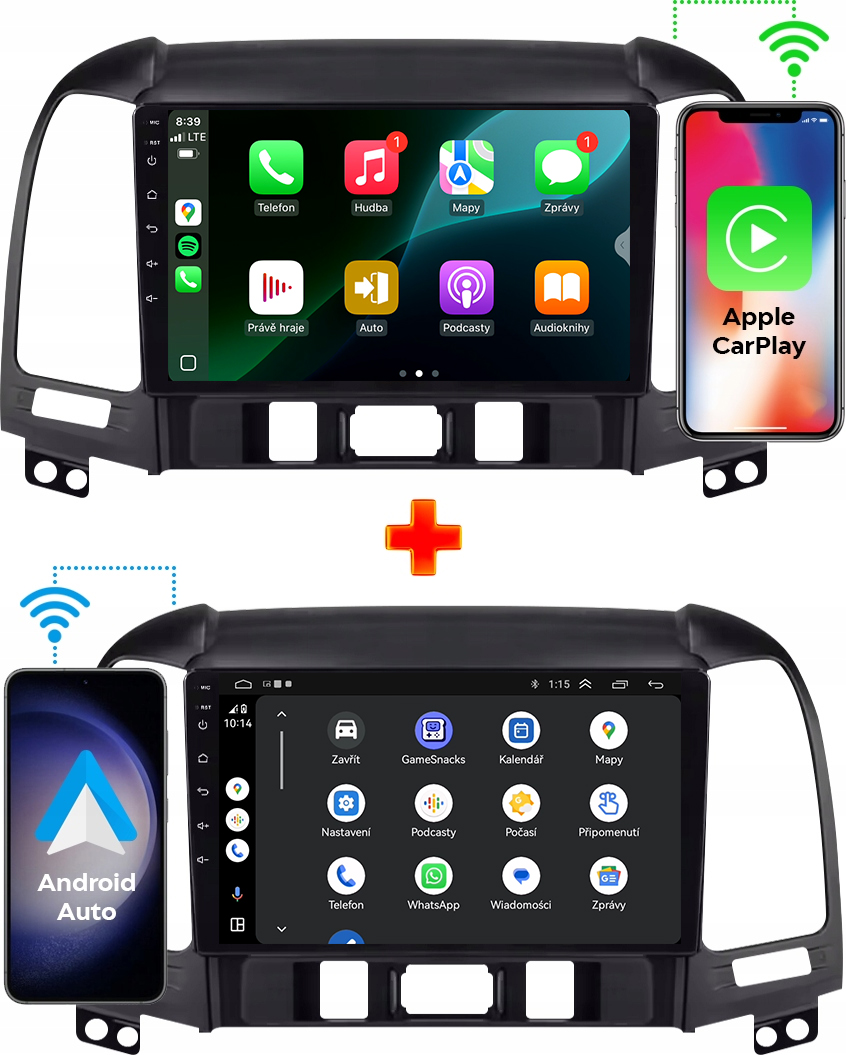 ✔️ Android Auto a Apple CarPlay – přístup k aplikacím jako WhatsApp, Messenger, Spotify, YouTube, Deezer, Amazon Music