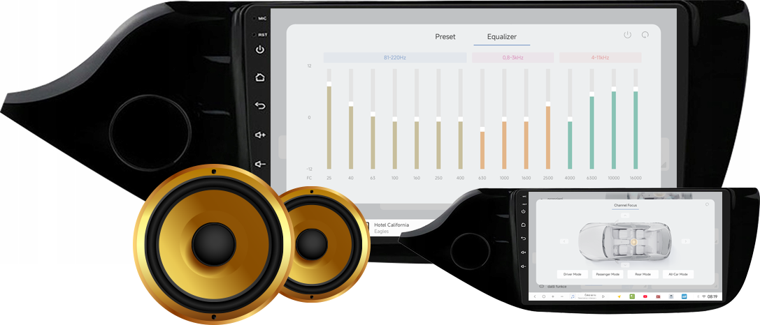 ✔️ Ekvalizér funguje v plném rozsahu bez ohledu na režim (Bluetooth, USB, FM rádio atd.).