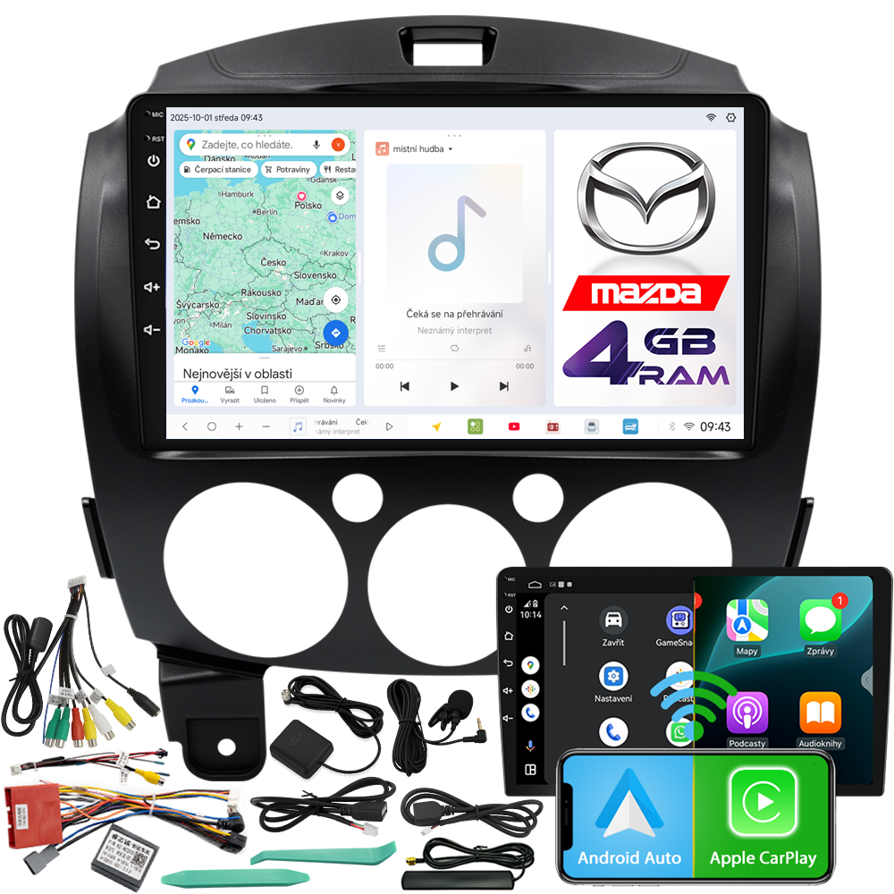 AUTORÁDIO NCS D9 Mazda 2 2007-2014 ANDROID NAVIGACE 4GB LTE