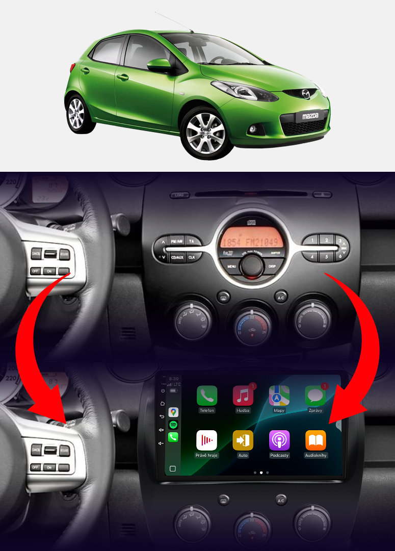 Rádio určené a plně přizpůsobené pro provoz ve vozidle Mazda 2 2007-2014