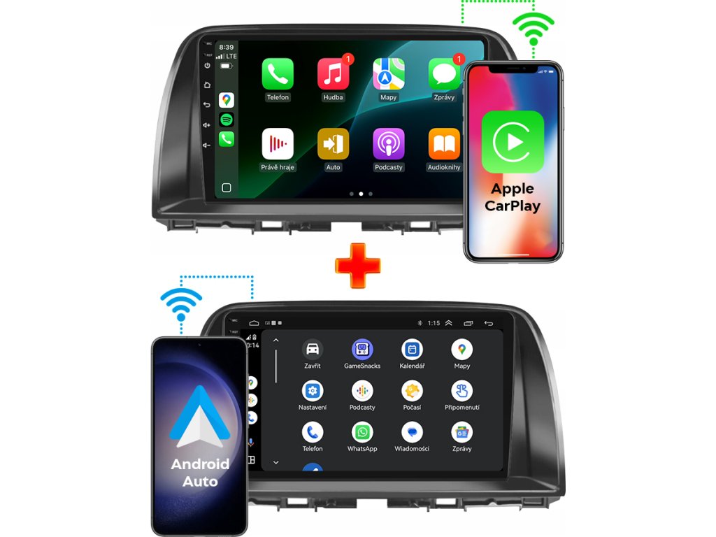 ✔️ Android Auto a Apple CarPlay – přístup k aplikacím jako WhatsApp, Messenger, Spotify, YouTube, Deezer, Amazon Music