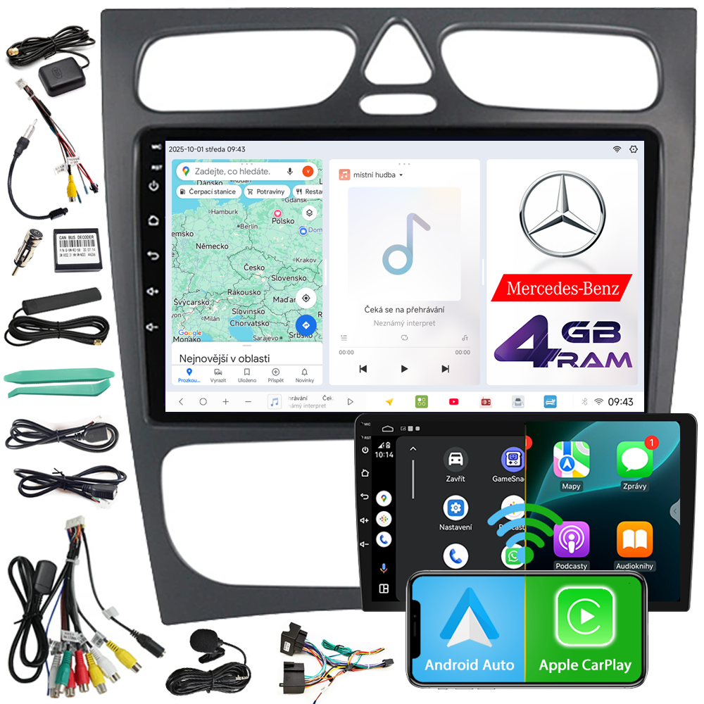 AUTORÁDIO NCS D9 MERCEDES-BENZ W203 2000-2007 ANDROID NAVIGACE 4GB LTE