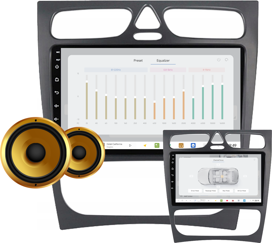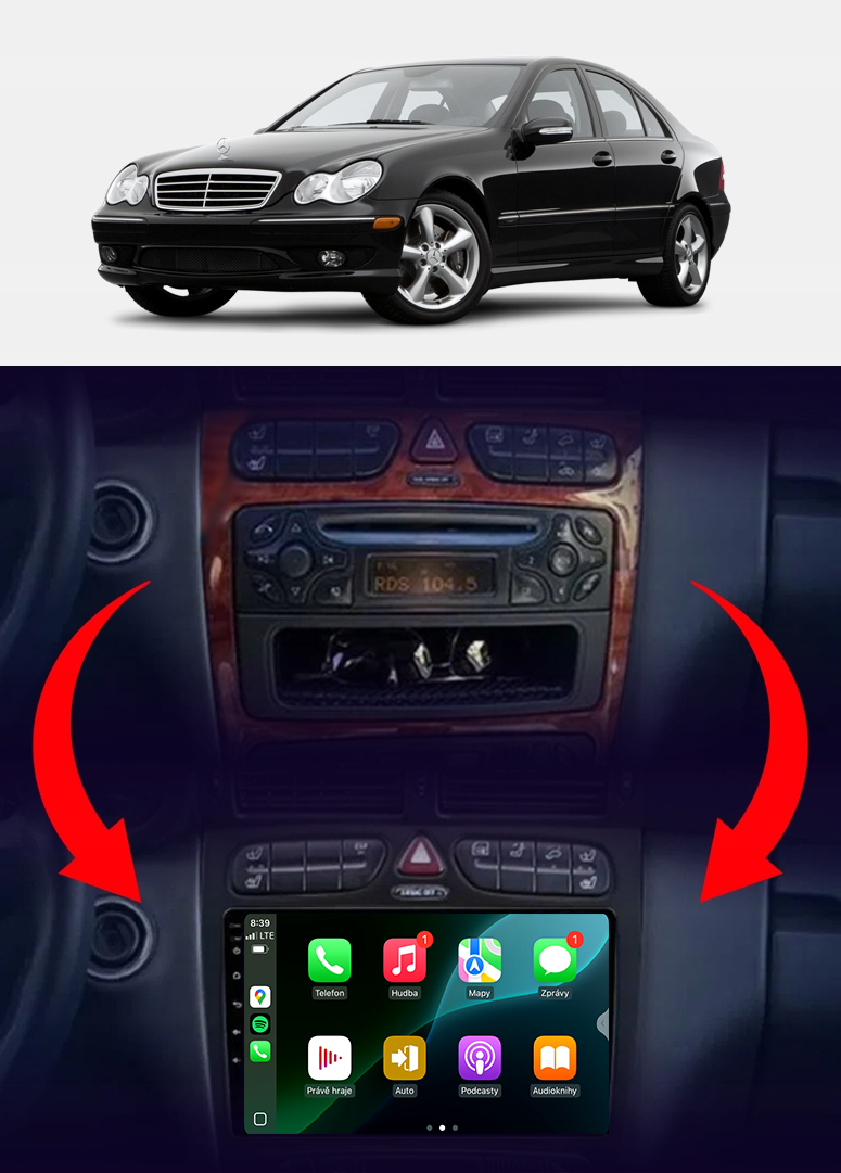 Rádio určené a plně přizpůsobené pro provoz ve vozidle MERCEDES-BENZ W203 2000-2007
