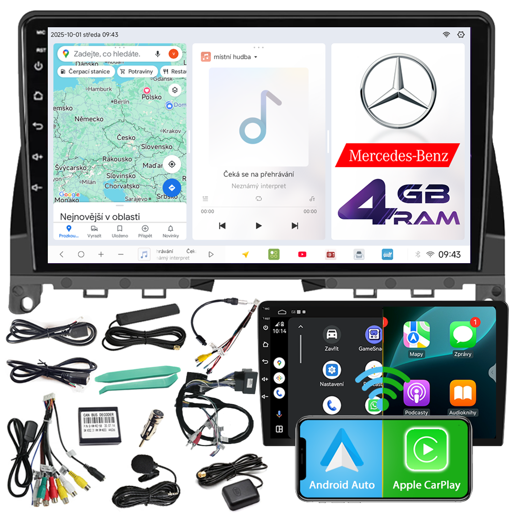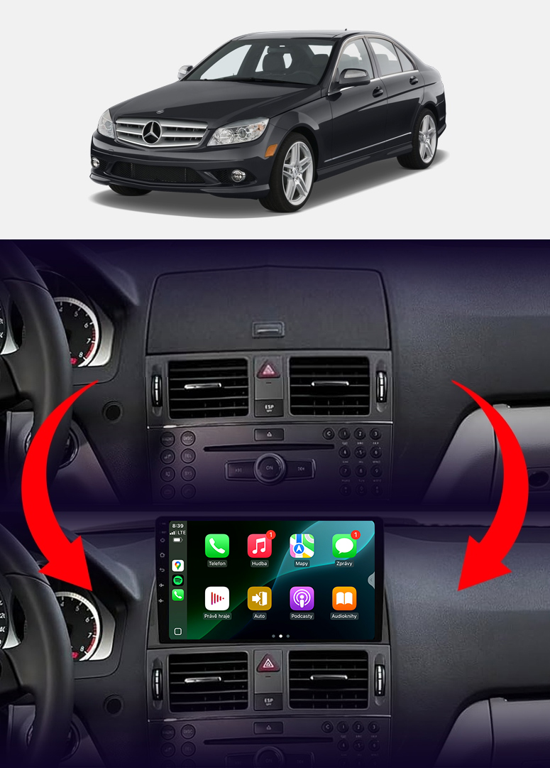 AUTORÁDIO NCS D9 MERCEDES-BENZ W204 2007-2010 ANDROID NAVIGACE 4GB LTE