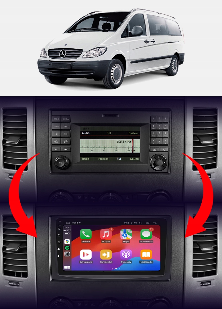 Rádio určené a plně přizpůsobené pro provoz ve vozidle MERCEDES VITO W639 2003-2014
