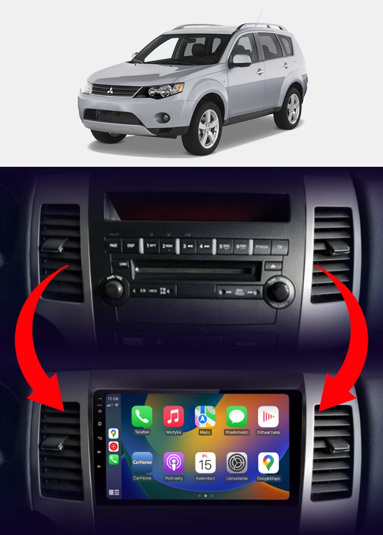 Rádio určené a plně přizpůsobené pro provoz ve vozidle MITSUBISHI OUTLANDER 2006-2012