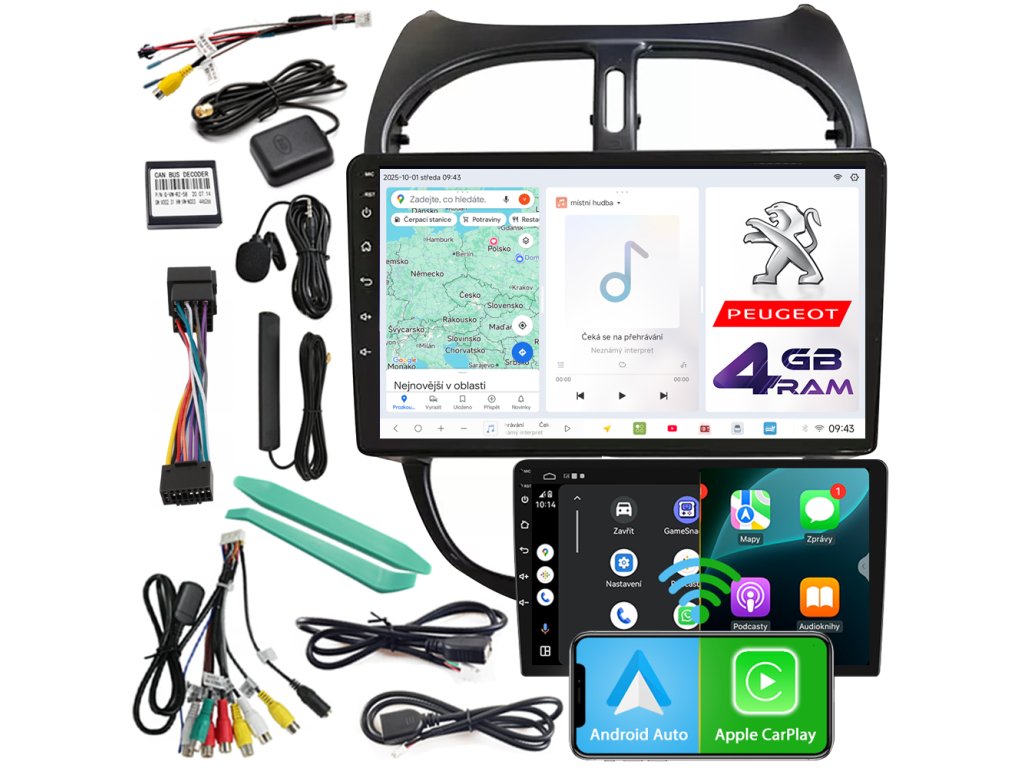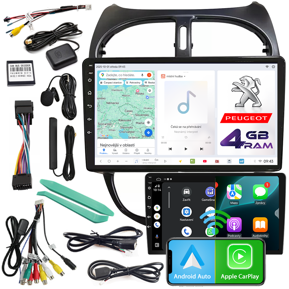 AUTORÁDIO NCS D9 PEUGEOT 206 206CC 2002-2010 ANDROID NAVIGACE 4GB LTE