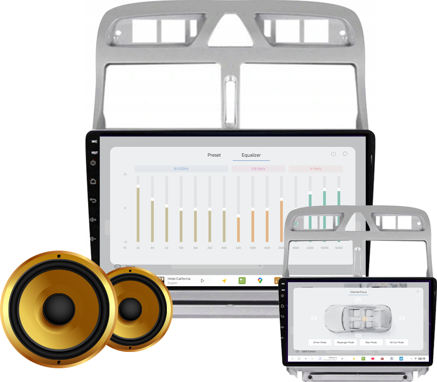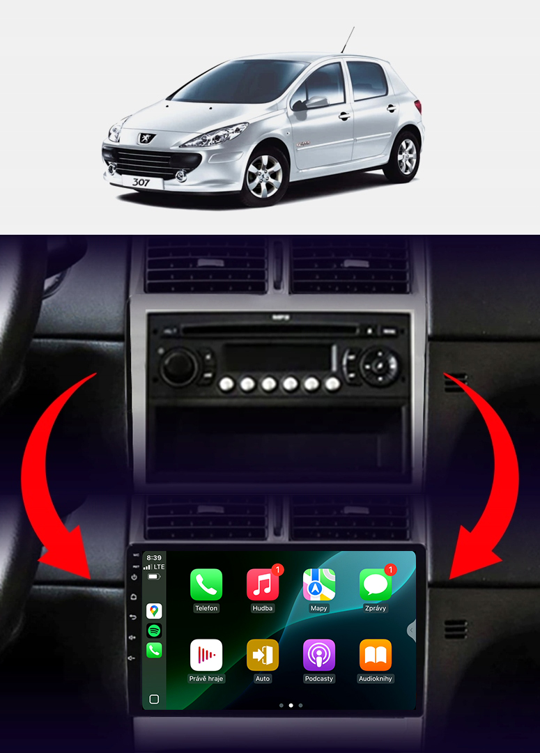 Rádio určené a plně přizpůsobené pro provoz ve vozidle PEUGEOT 307 2001-2008