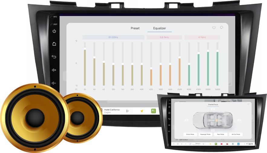✔️ Ekvalizér funguje v plném rozsahu bez ohledu na režim (Bluetooth, USB, FM rádio atd.).