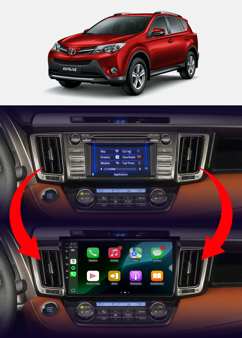 Rádio určené a plně přizpůsobené pro provoz ve vozidle Toyota RAV4 2013-2018