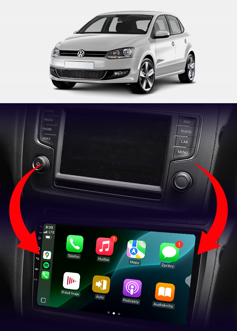 Rádio určené a plně přizpůsobené pro provoz ve vozidle VOLKSWAGEN POLO 5 V 2009-2017