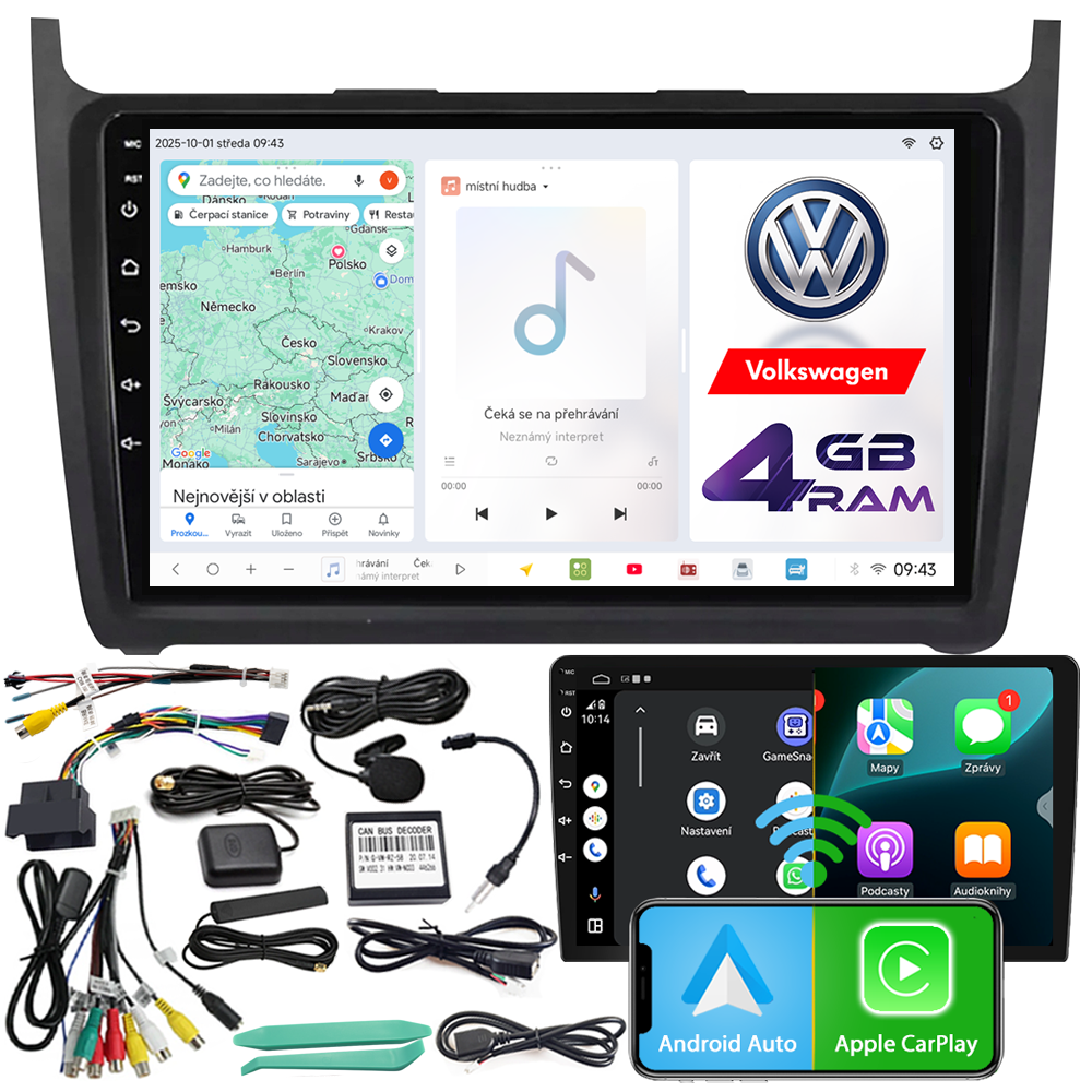 AUTORÁDIO NCS D9 VOLKSWAGEN POLO 5 V 2009-2017 ANDROID NAVIGACE 4GB LTE