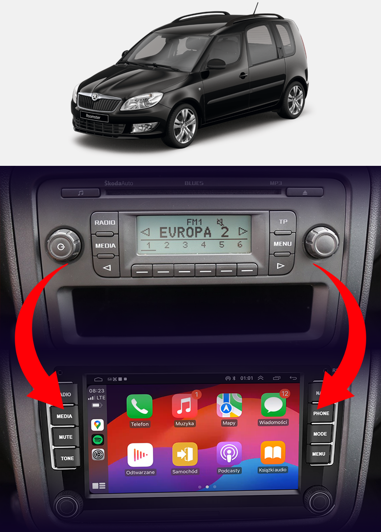 ✔️ Design přizpůsobený interiéru vozu – rádio vypadá jako originální a perfektně ladí s palubní deskou