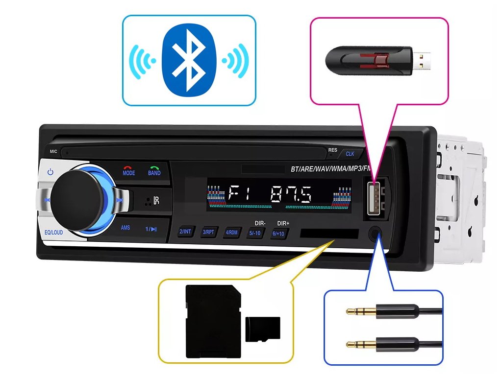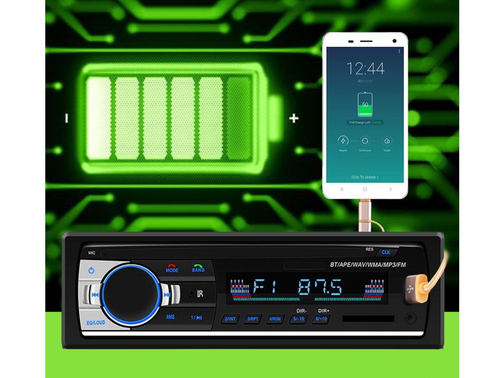 Značkové Bluetooth autorádio, které promění váš vůz ve skutečné multimediální centrum. Poslouchejte skladby přímo z telefonu přes AUX konektor, bluetooth (po spárování s telefonem) nebo přes USB port. Má zabudovaný hlasitý odposlech (HANDS-FREE), který zvyšuje bezpečnost při jízdě a umožňuje vyhnout se pokutám. Rádio je vybaveno univerzální ISO zástrčkou, která se nachází ve většině vozů vybavených instalací autorádia.