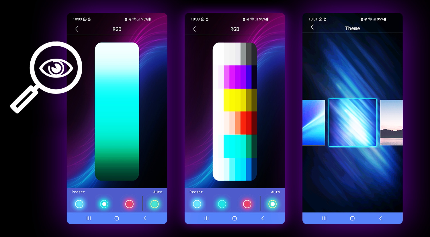 Zcela změní způsob používání autorádia! Rádio můžete konfigurovat přímo z aplikace ve smartphonu. Konfigurace grafického ekvalizéru, ekvalizér nastavením konkrétních frekvenčních pásem (na výběr je mnoho režimů Rock, Jazz, Pop atd.).