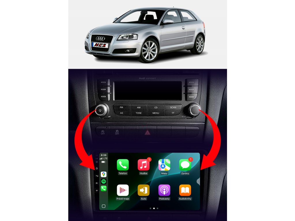 Rádio určené a plně přizpůsobené pro provoz ve vozidle AUDI A3 8P 2003-2012