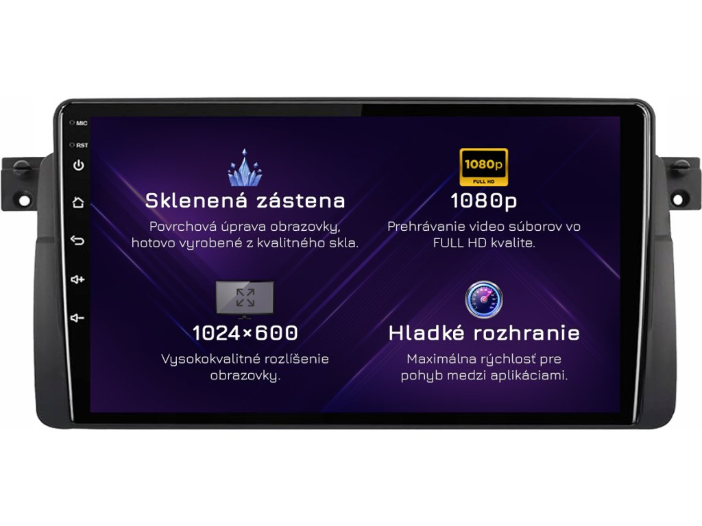 ⚠️ Rozlišení: 1024px x 600px = širokoúhlý Super VGA. Nejběžnější zobrazovací standard pro špičková rádia. Filmy se přehrávají v HD kvalitě.