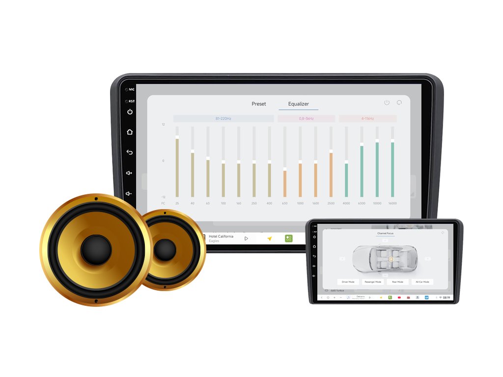 ✔️ Rozšiřte audio systém ve vozidle díky dalším výstupům, které umožňují připojit komponenty jako zesilovače nebo subwoofery.