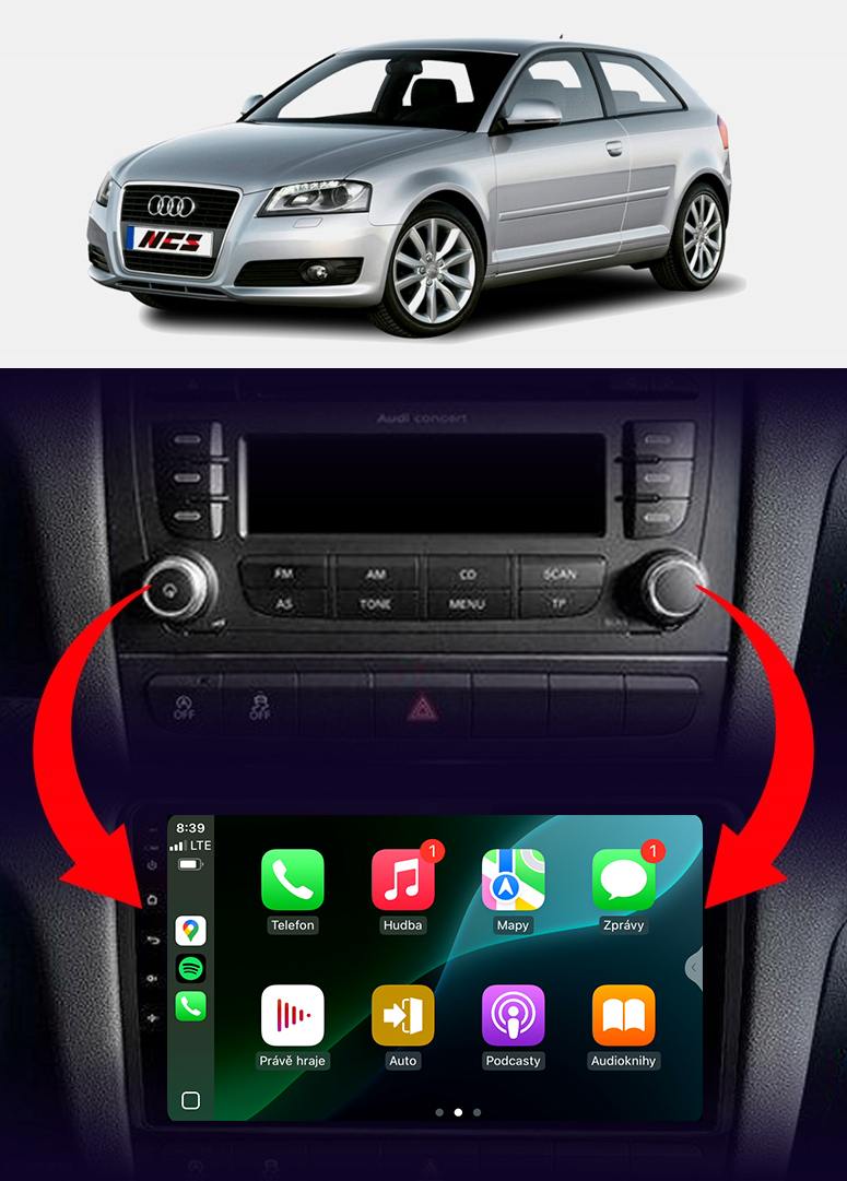 Rádio určené a plně přizpůsobené pro provoz ve vozidle AUDI A3 8P 2003-2012