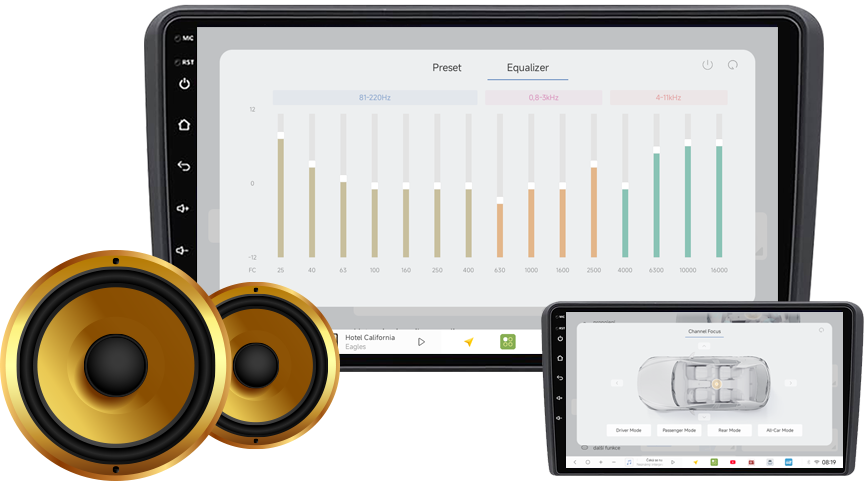 ✔️ Pokročilý digitální ekvalizér umožňuje přizpůsobit zvuk – díky nastavitelným posuvníkům ekvalizéru lze velmi jednoduše nastavit zvuk podle vlastních preferencí.