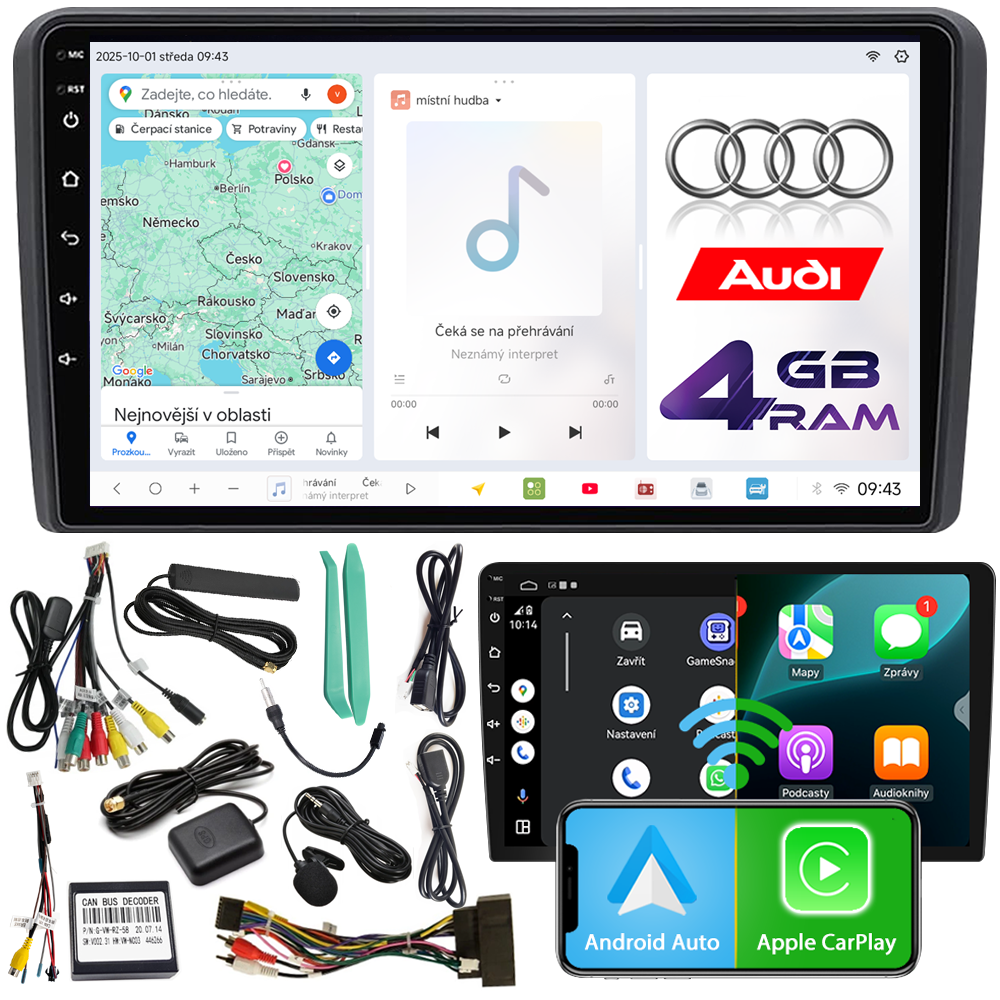 AUTORÁDIO NCS RS-305 D9 AUDI A3 8P 2003-2012 ANDROID NAVIGACE 4GB LTE