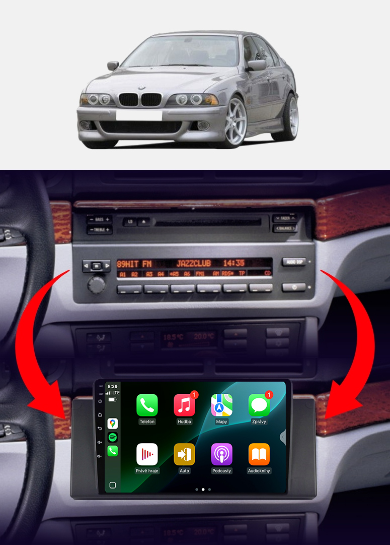 Rádio určené a plně přizpůsobené pro provoz ve vozidle BMW E39 1995-2004