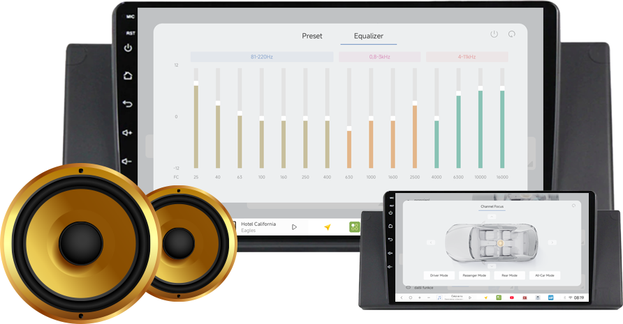✔️ Ekvalizér funguje v plném rozsahu bez ohledu na režim (Bluetooth, USB, FM rádio atd.).