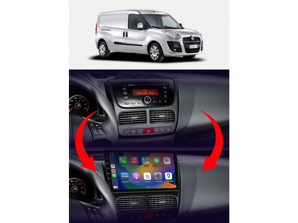 Rádio určené a plně přizpůsobené pro provoz ve vozidle FIAT DOBLO 2010-2015