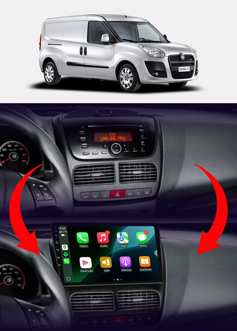 Rádio určené a plně přizpůsobené pro provoz ve vozidle Fiat Doblo II 2009-2015