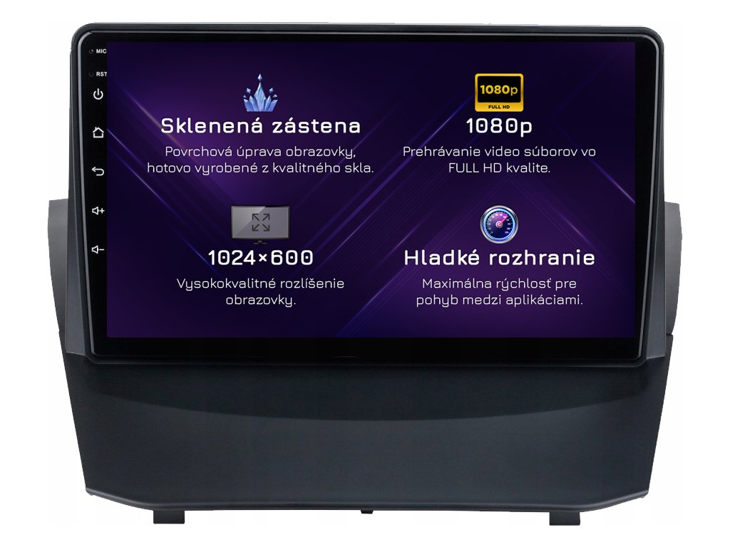 ⚠️ Rozlišení: 1024px x 600px = širokoúhlý Super VGA. Nejběžnější zobrazovací standard pro špičková rádia. Filmy se přehrávají v HD kvalitě.